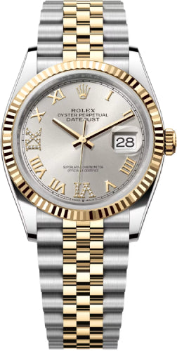 Rolex Datejust 36 Yellow Gold/Steel Silver Roman Diamond VI Dial & Fluted Bezel Jubilee Bracelet 126233