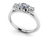 This item features exclusively high-quality natural diamonds, ensuring superior quality and ethical sourcing. For more information about the diamond quality, please do not hesitate to contact us. Classically elegant, this ring features three extraordinary diamonds set symmetrically. The largest diamonds sits higher in the middle and is flanked by two smaller diamonds. The setting provides an intricate bridge accent without taking away from the brilliance of the diamonds! Customizable options available to fit your needs.