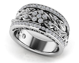 This item features exclusively high-quality natural diamonds, ensuring superior quality and ethical sourcing. For more information about the diamond quality, please do not hesitate to contact us. The whimsical pattern of this diamond ring combined with the elegant two-tone design creates a vintage inspired and unique ring. There are 78 diamonds total set along the edges and interior of this ring. Perfect as a fashion ring, anniversary ring or wedding band, this ring has a lot of sparkle. Customize it based on your favorite metal type and diamond quality for a gorgeous ring you'll love to wear!