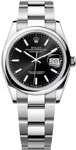 Rolex Datejust 36 Stainless Steel Black Index Dial & Smooth Domed Bezel Oyster Bracelet 126200