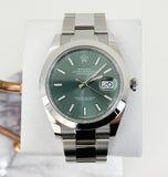 Rolex Datejust 41 Stainless Steel Mint Green Index Dial Smooth Bezel Oyster Bracelet 126300