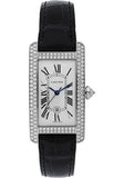 Cartier Tank Americaine Watch - Medium White Gold Diamond Case - Alligator Strap - WB710002