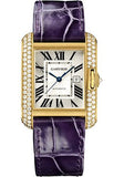 Cartier Tank Anglaise Watch - 39.2 mm Yellow Gold Diamond Case - Silvered Dial - Aubergine Alligator Strap - WT100017