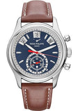40.5mm stainless steel case, sapphire-crystal back, silvery opaline dial with blackened gold applied hour markers, caliber CH 28-520 IRM QA 24H self-winding movement with annual calendar, chronograph, 60-minute and 12-hour mono counter, apertures for day date and month, approximately 45-55 hours of power reserve, vintage brown calf Leather Strap strap, clevis prong buckle. Water resistant to 30 m.