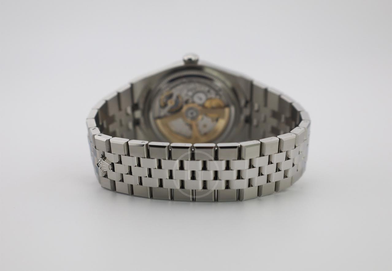 Rolex Land-Dweller 40 White Gold Oystersteel Intense White Honeycomb Motif Dial Fluted Bezel Flat Jubilee Bracelet 127334 - 2025