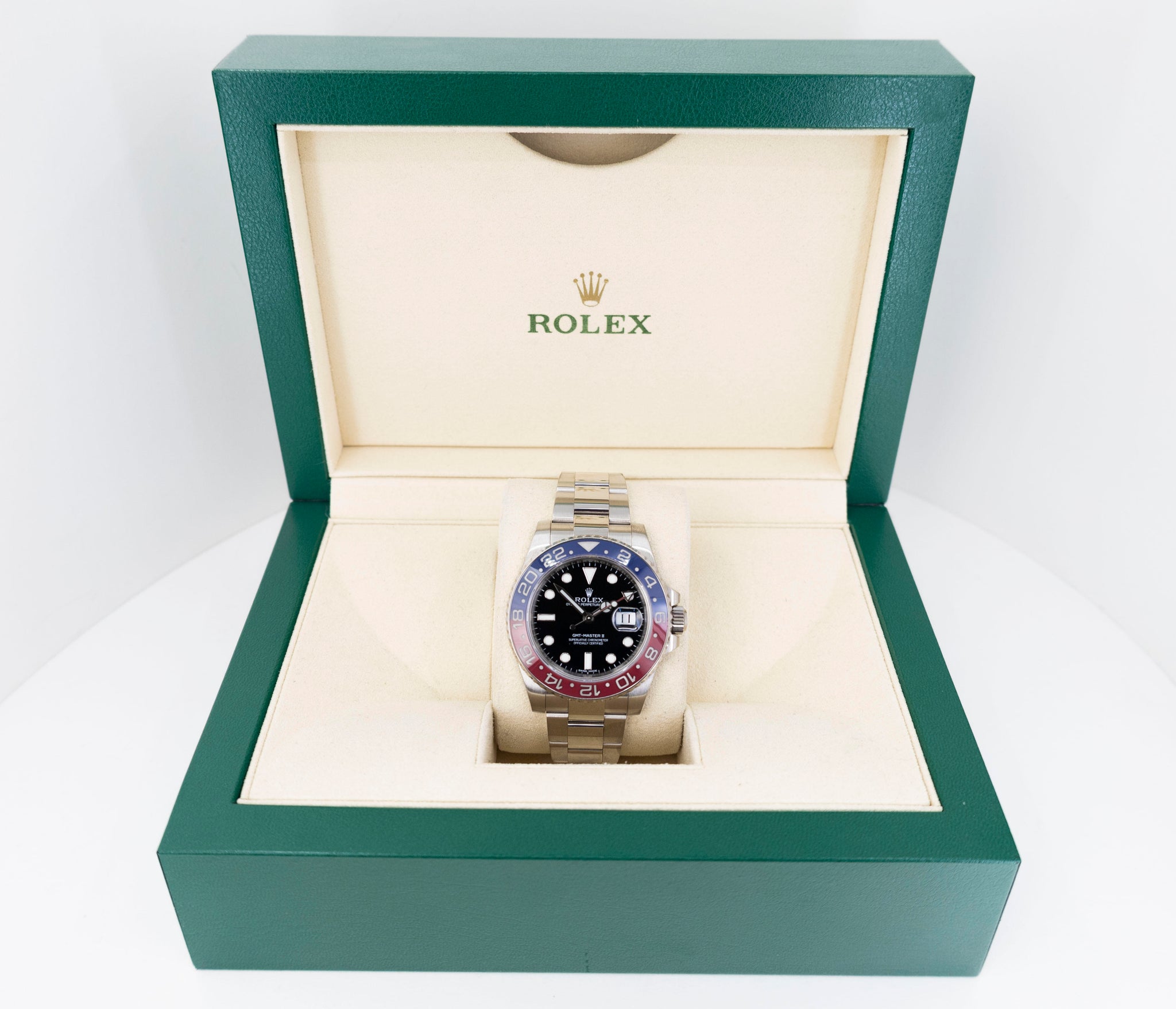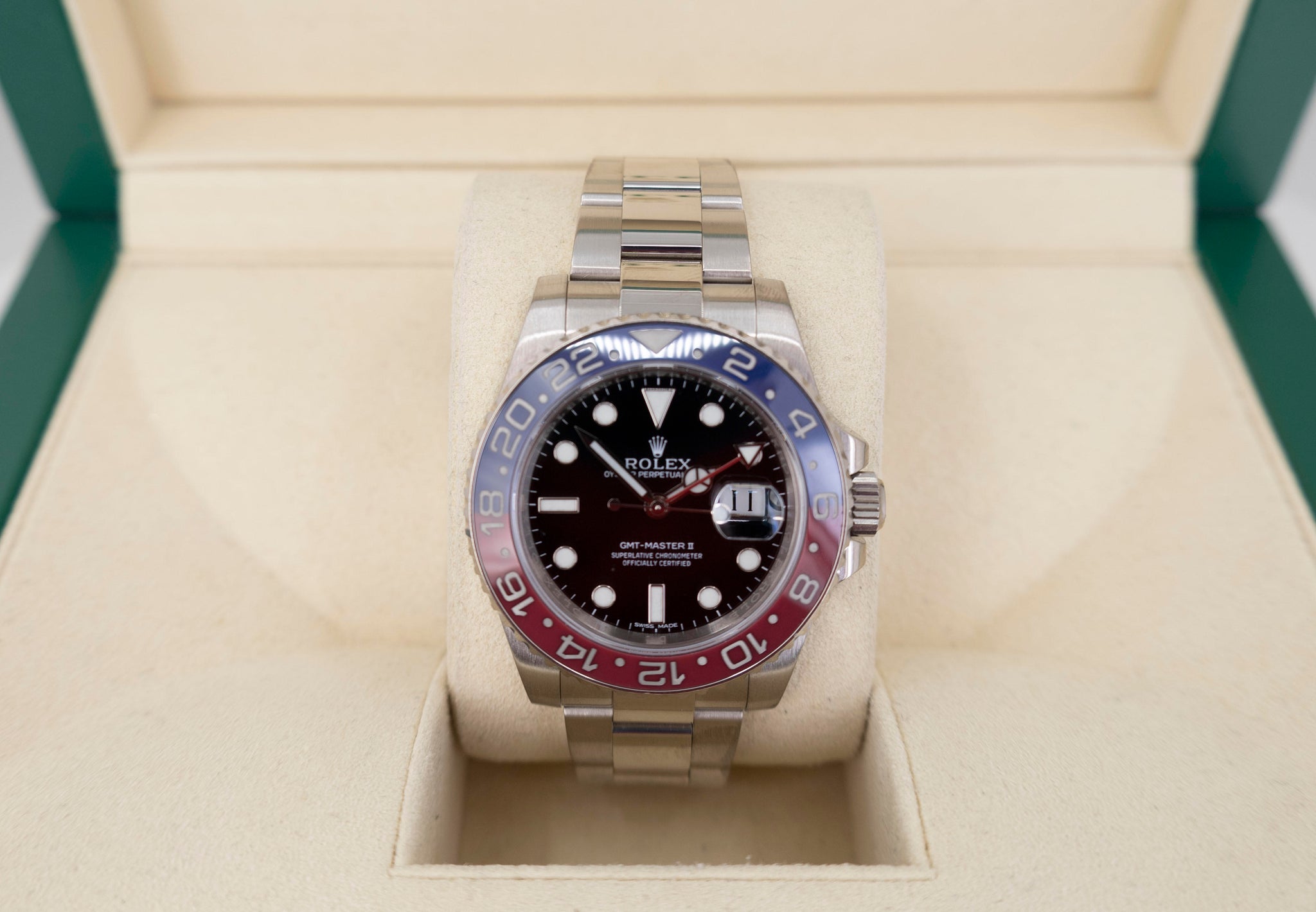 Rolex Steel GMT-Master II 40 Watch - Blue And Red Pepsi Bezel - Black Dial - Oyster Bracelet - 126710BLRO o