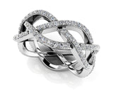 The item exclusively features Lab-Grown Diamonds in FG/VS quality, ensuring premium quality and ethical sourcing. For any inquiries regarding the quality of the stones, please feel free to contact us. This incredible diamond eternity ring features an eye catching woven design that showcases dazzling diamonds and a shiny gold or platinum setting. Round diamonds are prong set all around the ring. This design can be worn as the perfect stand-alone ring or as an accompaniment to an existing wedding ring. Customize with your choice of metal type and diamond quality.