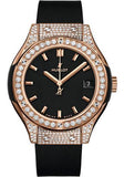 Hublot Classic Fusion King Gold Pave Watch - 33 mm - Black Dial - Black Rubber and Leather Strap-581.OX.1181.RX.1704 - Luxury Time NYC