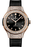 Hublot Classic Fusion King Gold Pave Watch - 38 mm - Black Dial - Black Rubber and Leather Strap-565.OX.1480.LR.1604 - Luxury Time NYC