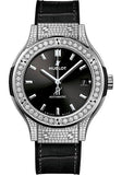 Hublot Classic Fusion Titanium Pave Watch - 38 mm - Black Dial - Black Rubber and Leather Strap-565.NX.1470.LR.1604 - Luxury Time NYC