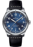 Breitling Aviator 8 Automatic 41 Watch - Steel Case - Blue Dial - Black Leather Strap - A17314101C1X2