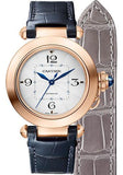 Cartier Pasha de Cartier Watch - 35 mm Pink Gold Case - Silver Dial - Navy Blue And Gray Alligator Straps - WGPA0014 - Luxury Time NYC
