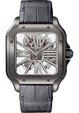 Cartier Santos de Cartier Watch - 39.8 mm Black Steel Case - Skeleton Dial - Black Black Alligator Strap - Both Bracelet - WHSA0009