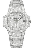33.6mm 18K white gold case paved with diamonds, sapphire-crystal back, diamond paved dial, caliber 324 S C self-winding movement with date in an aperture and center sweep second hand, approximately 35-45 hours of power reserve, 18K white gold bracelet paved with diamonds, fold-over buckle. Water resistant to 30 m.