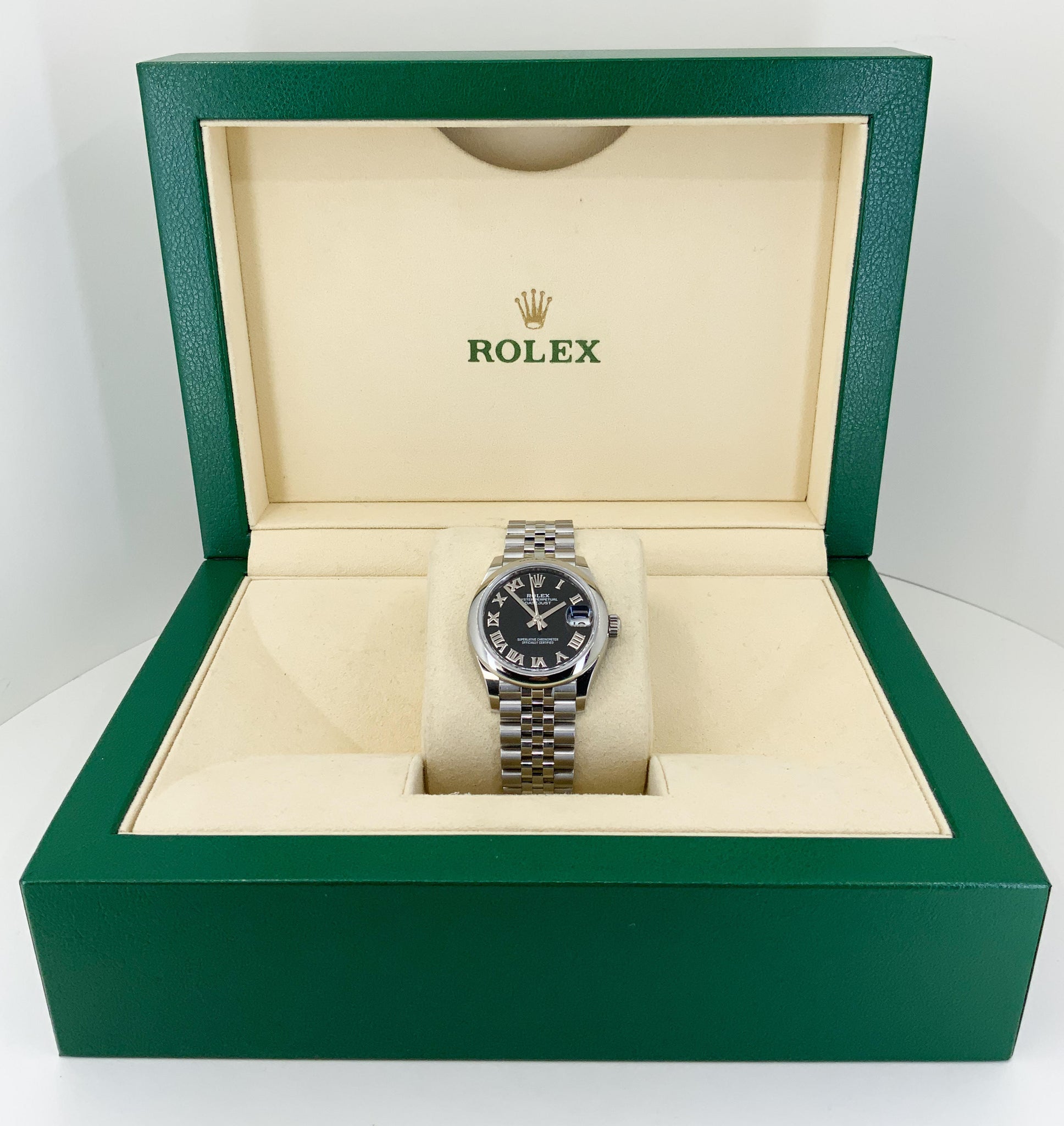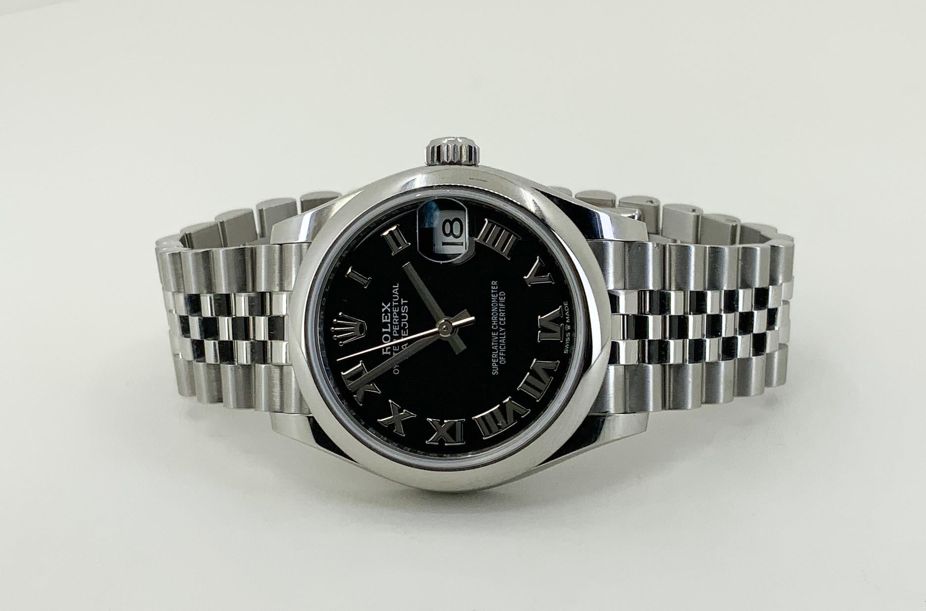 Rolex Steel and White Gold Datejust 31 Watch - Domed Bezel - Black Roman Dial - Jubilee Bracelet - 2020 Release - 278240 bkrj
