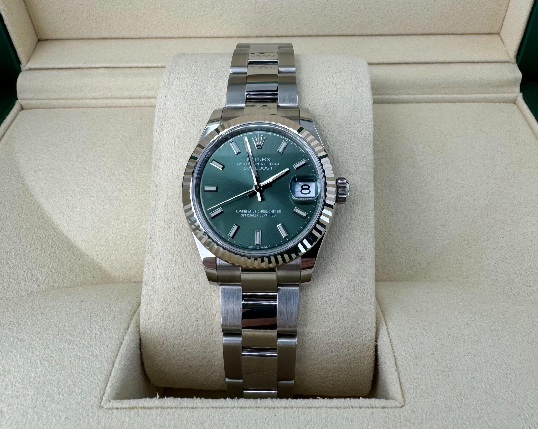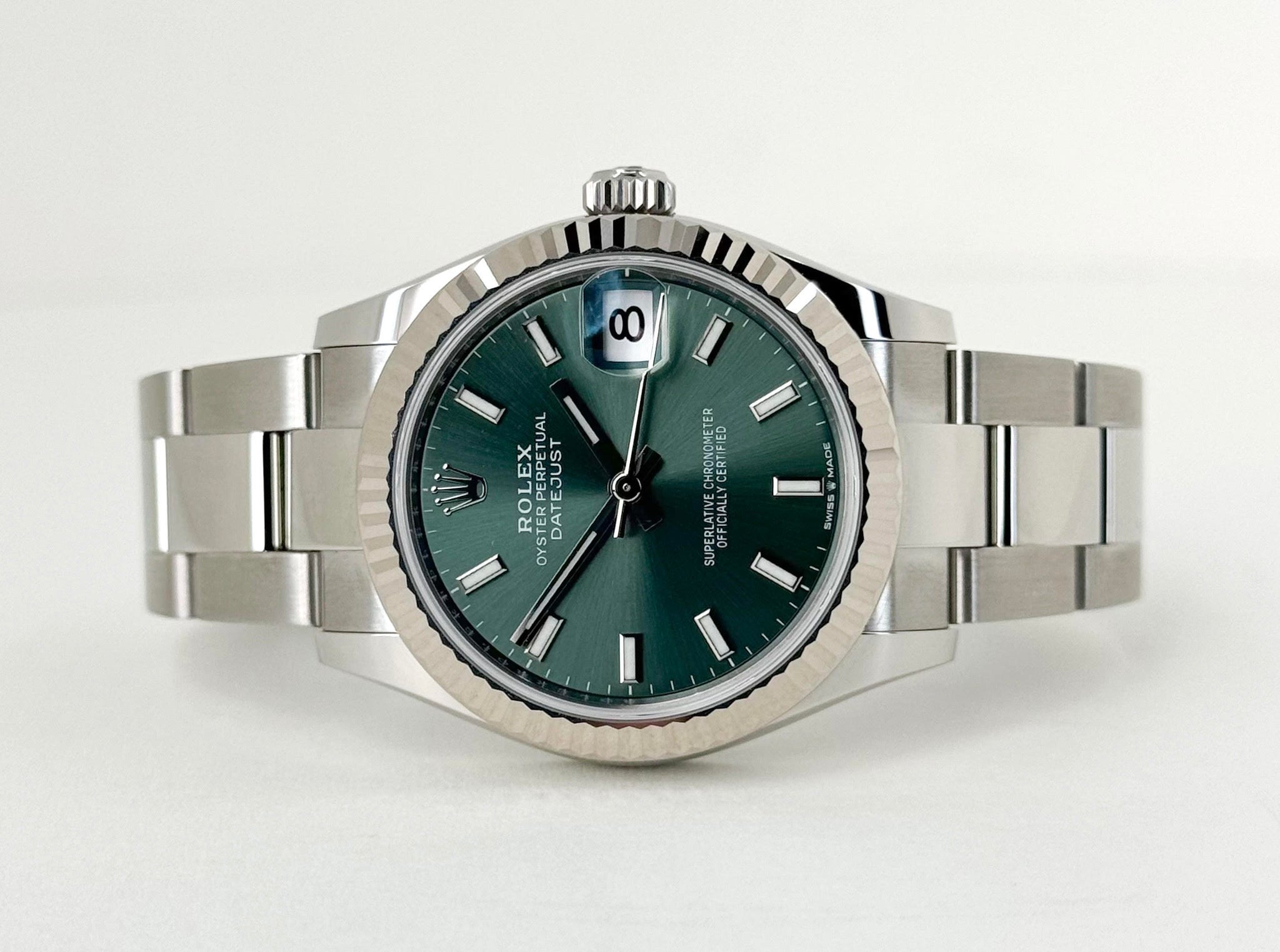 Rolex Steel and White Gold Datejust 31 Watch - Fluted Bezel - Mint Green Index Dial - Oyster Bracelet - 278274 mgio