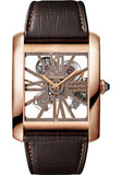 Cartier Tank MC Watch - 34.5 mm Pink Gold Case - Pink Gold Case Bezel - Skeleton Dial - Brown Alligator Strap - W5310040