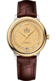 Omega De Ville Prestige Co-Axial Watch - 32.7 mm Steel And Yellow Gold Case - Champagne Dial - Brown Leather Strap - 424.23.33.20.58.001