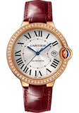 Cartier Ballon Bleu de Cartier Watch - 40 mm Rose Gold Diamond Case - Silvered Dial - Burgundy Alligator Strap - WJBB0056