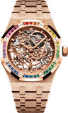 Audemars Piguet Royal Oak 37mm Frosted Gold Double Balance Wheel Openworked Rose Gold Rainbow Sapphire - 15468OR.YG.1259OR.01