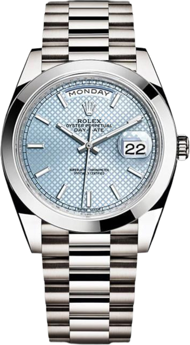 Rolex Day-Date 40 Platinum Ice Blue Diagonal Motif Dial & Smooth Bezel President Bracelet 228206 -