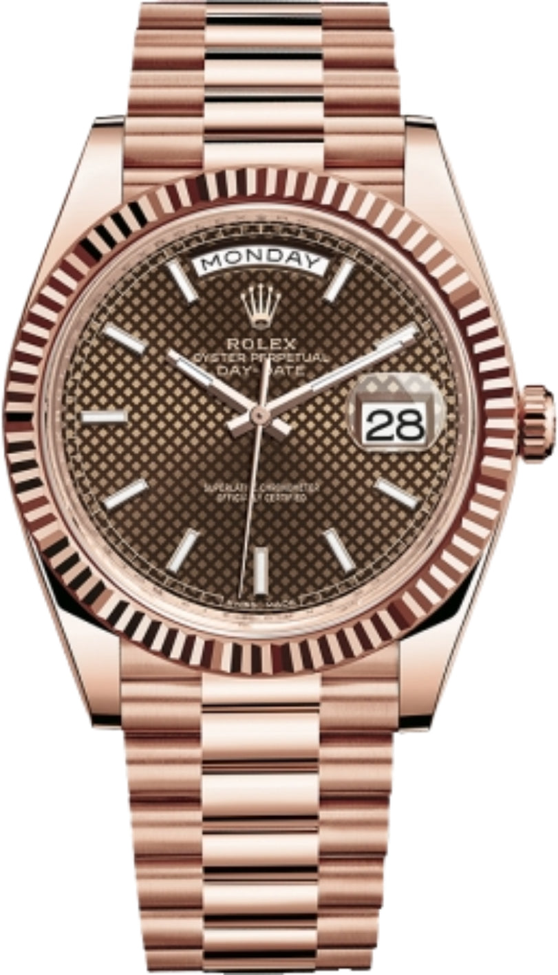 Rolex Day-Date 40 Rose Gold Chocolate Diagnonal Motif Index Dial & Fluted Bezel President Bracelet 228235 -
