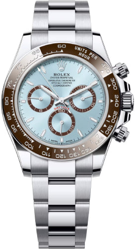 Rolex Daytona Platinum Ice Blue Index Dial Chestnut Brown Ceramic Bezel Oyster Bracelet 116506