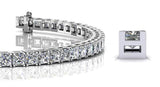 This item features exclusively high-quality natural diamonds, ensuring superior quality and ethical sourcing. For more information about the diamond quality, please do not hesitate to contact us. This beautiful Princess Cut Diamond Dreams Bracelet will be the bracelet you buy and keep forever! Featuring a nearly invisible prong design with no gap between the links, makes this design appear like a seamless row of diamonds on your wrist. With popular princess cut stones and a four prong design, you will be amazed at how nicely this design sparkles from every direction. Available in your choice of white gold, yellow gold or platinum and in seven different sizes ranging from 4 carats to a luxurious 13 carats total diamond weight! Make her dreams come true by customizing this bracelet today!