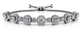 This item features exclusively high-quality natural diamonds, ensuring superior quality and ethical sourcing. For more information about the diamond quality, please do not hesitate to contact us. This exquisite adjustable diamond bracelet will make an irresistible statement! The design features alternating halos of round diamonds set perfectly around a larger center diamond. Available in your choice of 1.8, 2.64 and 3.16 carats.