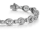 This item features exclusively high-quality natural diamonds, ensuring superior quality and ethical sourcing. For more information about the diamond quality, please do not hesitate to contact us. Squares and Circles are common in jewelry design - but the lovely Almond shape in this bracelet is truly unique! Each lovely link, lined with diamonds also houses a lovely diamond which appears to float in the center. We've connected each of these links with a perfect, round diamond. Have this made in either gold or platinum, the choice is yours. A truly classic piece you'll wear with pride forever.