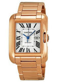 Medium size (39.2mm x 29.8mm) 18K pink gold case, nine-sided crown set with a sapphire, sapphire crystal, slivered and lacquered flinque dial with Roman numerals and sword-shaped blued-steel hands, self-winding caliber Cartier 077 movement, 18K pink gold bracelet. Water resistant to 30 meters.