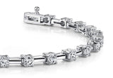 This item features exclusively high-quality natural diamonds, ensuring superior quality and ethical sourcing. For more information about the diamond quality, please do not hesitate to contact us. This piece is another truly stunning bracelet in our collection. Choose from 6 different sizes, in total carat weights ranging from 1 to 5 carats. The diamonds in this bracelet are prong-set round stones, and each is linked by a fabulous rectangle of gold or platinum. With a sturdy clasp, this bracelet sits flat and looks beautiful on any wrist. The perfect, classic choice!