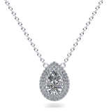 The item exclusively features Lab-Grown Diamonds in FG/VS quality, ensuring premium quality and ethical sourcing. For any inquiries regarding the quality of the stones, please feel free to contact us. This gorgeous diamond pendant features 2 rows of diamonds surrounding the pear shape center diamond. The effect is spectacular. Customize this diamond pendant today by choosing the metal type, total carat weight, diamond quality and chain length.