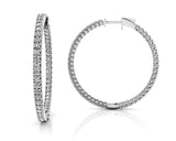 This item features exclusively high-quality natural diamonds, ensuring superior quality and ethical sourcing. For more information about the diamond quality, please do not hesitate to contact us. An elegant curved prong setting adds an interesting element to the design of these diamond hoop earrings. With a unique inside out hoop design, there is diamond sparkle on the front side of the earrings and along the interior. These large hoop earrings are 1.16. high and are available in 4 different sizes including 1.8, 2.46, 3.1, and 3.95 carats of total diamond weight. Create the perfect pair when you customize in yellow gold, white gold or platinum!