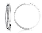 This item features exclusively high-quality natural diamonds, ensuring superior quality and ethical sourcing. For more information about the diamond quality, please do not hesitate to contact us. Dazzling round diamonds form a beautiful 3 row pattern in each of these stunning hoop earrings. Fashion yours in 14K or 18 k gold or platinum, these earrings have a total diamond weight of 2.64 carats and secure with easy to use push button backs. Measuring at 1.8. in height.