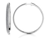 This item features exclusively high-quality natural diamonds, ensuring superior quality and ethical sourcing. For more information about the diamond quality, please do not hesitate to contact us. Perfect for a look of elegant glamour, these stunning triple row pave set hoop earrings will light up the room. Create your perfect pair in three available carat weights in your choice of 14k or 18k gold or platinum and easily fasten with our secure push button closure.