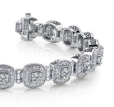 The item exclusively features Lab-Grown Diamonds in FG/VS quality, ensuring premium quality and ethical sourcing. For any inquiries regarding the quality of the stones, please feel free to contact us. This diamond bracelet is full of intricate details and luminous diamonds. Each link has a beautiful round diamond secured with four prongs, surrounded by millgrain edging and another row of smaller diamonds. In between each diamond link is a gold or platinum tube link which adds flexibility to this fancy design. Customize in white gold, yellow gold or platinum to create a one-of-a-kind work of art.