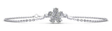 This item features exclusively high-quality natural diamonds, ensuring superior quality and ethical sourcing. For more information about the diamond quality, please do not hesitate to contact us. Renew your wardrobe with this perfect flower bracelet, featuring 6 diamonds. The bracelet adjusts to two different lengths to fit your wrist comfortably. Customize the bracelet by selecting the type of metal and diamond quality to truly make it your own. This one's sure to make her stop & smell the flowers!