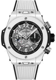 Hublot Big Bang Unico White Ceramic Watch - 44 mm - Black Skeleton Dial - Black and White Rubber Strap-421.HX.1170.RX
