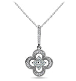 This item features exclusively high-quality natural diamonds, ensuring superior quality and ethical sourcing. For more information about the diamond quality, please do not hesitate to contact us. You'll feel lucky when wearing this incredibly shimmering pendant necklace. A charming design featuring a cluster of four diamonds in the middle, surrounded by a flower shaped petal with more diamond sparkle. A diamond lined hoop connects the drop pendant with its' matching chain. Customize your choice of three sizes; .43, .60 and .74 carats and favorite metal type to create your own beautiful diamond pendant.