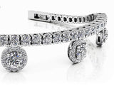 This item features exclusively high-quality natural diamonds, ensuring superior quality and ethical sourcing. For more information about the diamond quality, please do not hesitate to contact us. Take her breath away with this romantic and exotic diamond charm bracelet. A sparkling four prong diamond bracelet features five sparkling charms. Each charm holds a brilliant round diamond encircled by a halo of diamonds. Choose your setting in either gold or platinum. Both alluring and sophisticated this unique bracelet will light up the room.
