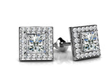 This item features exclusively high-quality natural diamonds, ensuring superior quality and ethical sourcing. For more information about the diamond quality, please do not hesitate to contact us. These diamond studs are the perfect accessory to add sparkle to any look. In the center of each stud is a lovely princess cut diamond bordered by smaller round diamonds. A square shape design accentuates the exquisiteness of the princess cut center stones. Choose from four sizes including .47, 1.10, 1.48 and 1.94 carats and your favorite metal type.