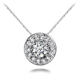 This item features exclusively high-quality natural diamonds, ensuring superior quality and ethical sourcing. For more information about the diamond quality, please do not hesitate to contact us. Circles are a hot design element. This pendant proves that it IS possible to take a classic design and turn up the volume! We've outlined this beautiful circle pendant in lovely, round diamonds that have been carefully channel set. Then, the centre really pops! Why. Because it features a lovely, round diamond, of course! Choose this in either gold or platinum, and in one of two sizes, either .24 carat or nearly half a carat total diamond weight, then, wait for the sparkle!