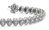 This item features exclusively high-quality natural diamonds, ensuring superior quality and ethical sourcing. For more information about the diamond quality, please do not hesitate to contact us. If you're looking for a slight twist on a classic design . this is it! Offered in 4 different sizes, these incredible pieces features between 30 and 40 diamonds, depending on the total carat weight you choose. Not only is each, brilliant, round diamond set in a prong-setting, but then a glistening 'outer oval ring surrounds EACH one..the effect is unique and stunning! Featuring our incredibly secure clasp, this piece is crafted in shimmering gold or platinum. When it comes to fabulous . this bracelet has it built in!