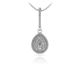 This item features exclusively high-quality natural diamonds, ensuring superior quality and ethical sourcing. For more information about the diamond quality, please do not hesitate to contact us. This timeless pendant has two rows of round diamonds surrounding the center teardrop shaped diamond. This vintage inspired design is sure to captivate and delight! Match it with our Vintage Teardrop Diamond Earrings to complete the look.