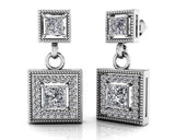 This item features exclusively high-quality natural diamonds, ensuring superior quality and ethical sourcing. For more information about the diamond quality, please do not hesitate to contact us. In jewelry design, the square shape has a very vintage & classic feel. These earrings take that to an entirely modern level! Small squares hold a fabulous, prong-set round diamonds. Then, a perfect double link, and another, larger square holding a larger diamond, and small diamonds surrounding it, dangles perfectly. These feature 1.4 carats of total diamond weight, and the design on these will truly shimmer from every angle! So come on . start from Square One today!