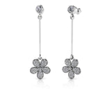 This item features exclusively high-quality natural diamonds, ensuring superior quality and ethical sourcing. For more information about the diamond quality, please do not hesitate to contact us. Show off your playful, elegant style with these flower blossom drop bar earrings. This unique design features a bezel set diamond with a bar, which drops down to a whimsical flower blossom set with brilliant, round pave style diamonds.