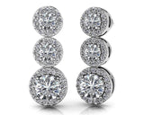 This item features exclusively high-quality natural diamonds, ensuring superior quality and ethical sourcing. For more information about the diamond quality, please do not hesitate to contact us. These exquisite earrings feature three halo diamonds stacked on top of each other to represent the past, present and future. These classy earrings will surely win her heart! Customize the earrings by selecting the metal type and diamond quality.