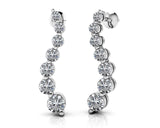 This item features exclusively high-quality natural diamonds, ensuring superior quality and ethical sourcing. For more information about the diamond quality, please do not hesitate to contact us. The diamonds in these Journey earrings meander down from the ear, gradually increasing in size. The wavy shape creates an effect that is truly remarkable. Each, round, prong-set stone is surrounded by a circle of gold or platinum . you choose! These lovely earrings are available for you in 4 different combinations, with total diamond weights ranging from 0.5 to 2 carats. What's not to love.