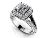This item features exclusively high-quality natural diamonds, ensuring superior quality and ethical sourcing. For more information about the diamond quality, please do not hesitate to contact us. This spectacular engagement ring is dripping in diamonds. Featuring an incredible double halo design surrounding a gorgeous princess cut diamond center stone. Additional diamonds are set along the split shank half way down the band. This engagement ring is vintage in essence with millgrain detailing surrounding the diamonds along the band and halo. Choose from six sizes for a total number of diamonds of 132 to 149 diamonds. Captivate your love with this elegant and striking princess engagement ring. "